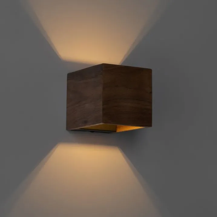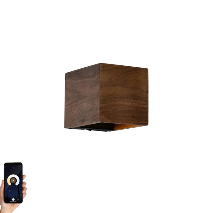 QAZQA Smarte Wandleuchten|Wandleuchten*Smart Wandleuchte Nussbaumholz inkl. Wi-Fi G9 - Transfer
